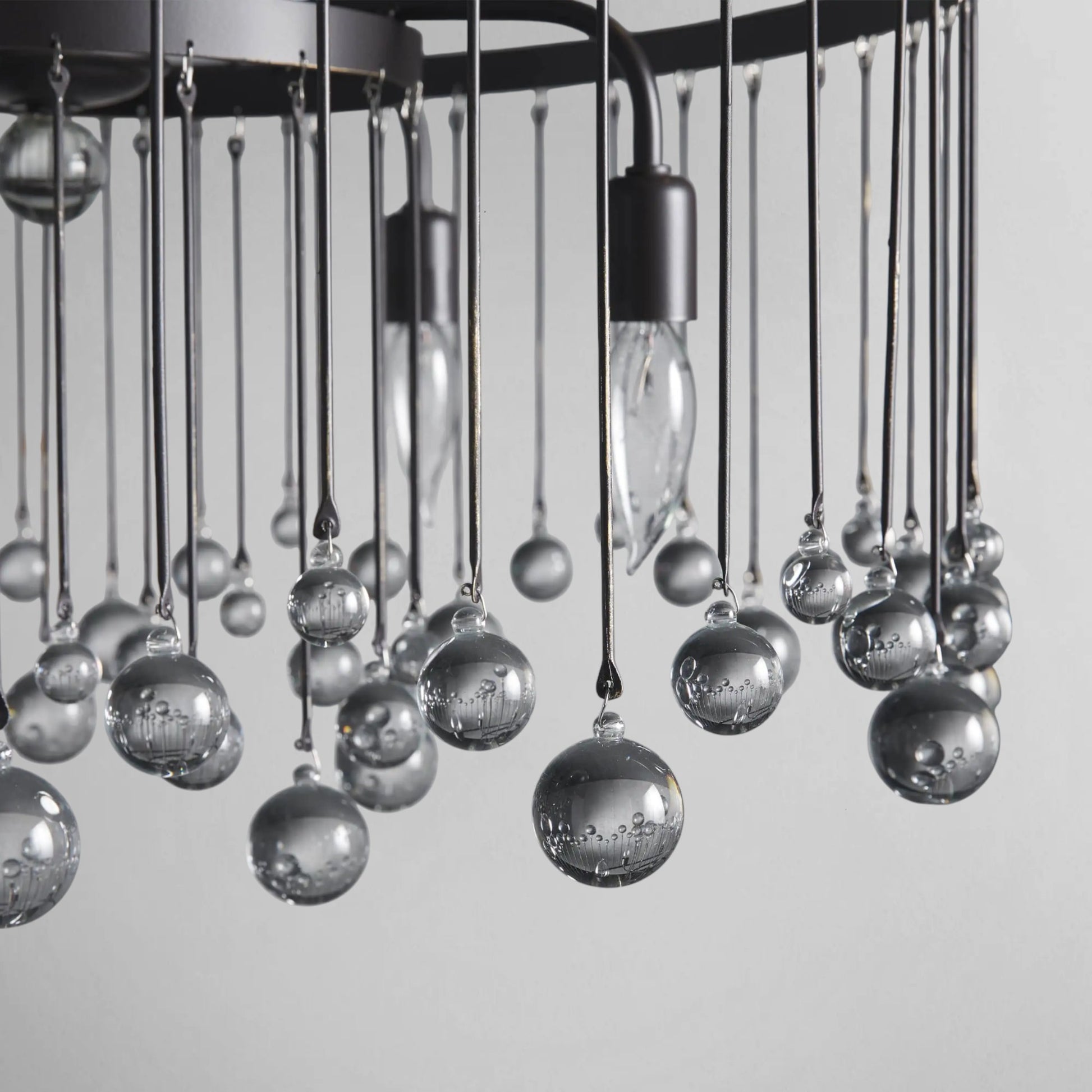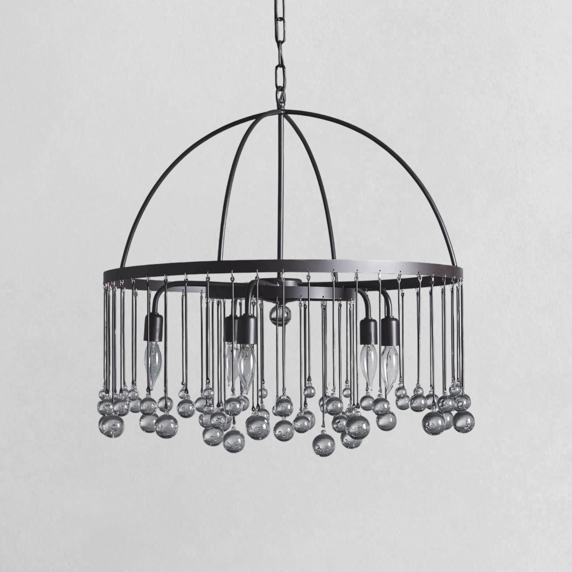 This chandelier features a solid iron cage adorned with cascading crystal drops in varying lengths, creating a dramatic interplay of structure and movement. When illuminated, the crystals catch and refract light, producing the illusion of motion and casting brilliant beams throughout the space. The bold contrast between the rugged metal frame and shimmering glass gives the fixture a striking presence suited to both historic interiors and modern loft-style settings.