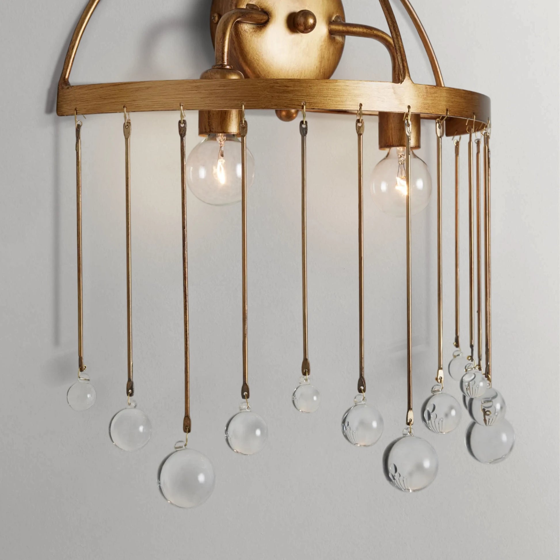 A graceful blend of vintage glamour and artisanal craftsmanship, the Galior Sconce brings soft brilliance to your walls. Its openwork iron frame is adorned with cascading crystal drops that catch and refract light, creating an elegant sense of movement. Whether placed in a French-inspired hallway, beside a mirror in a powder room, or along a refined gallery wall, Galior delivers a luminous statement that feels both timeless and romantic.