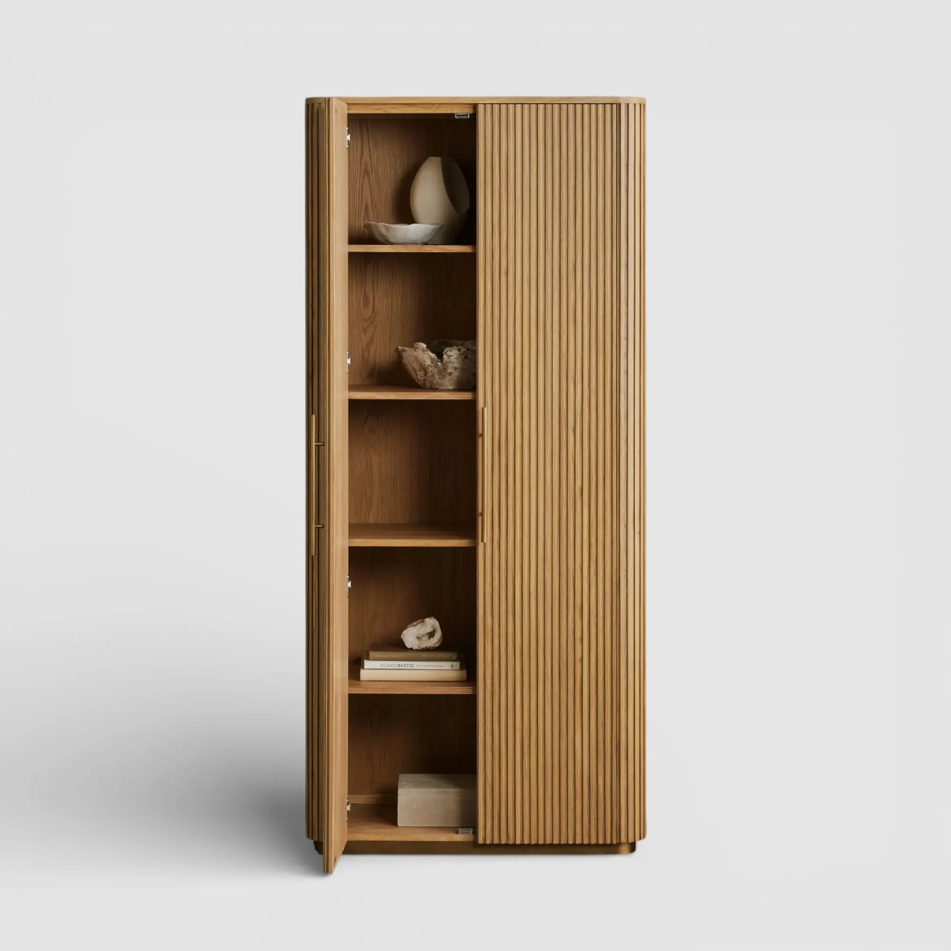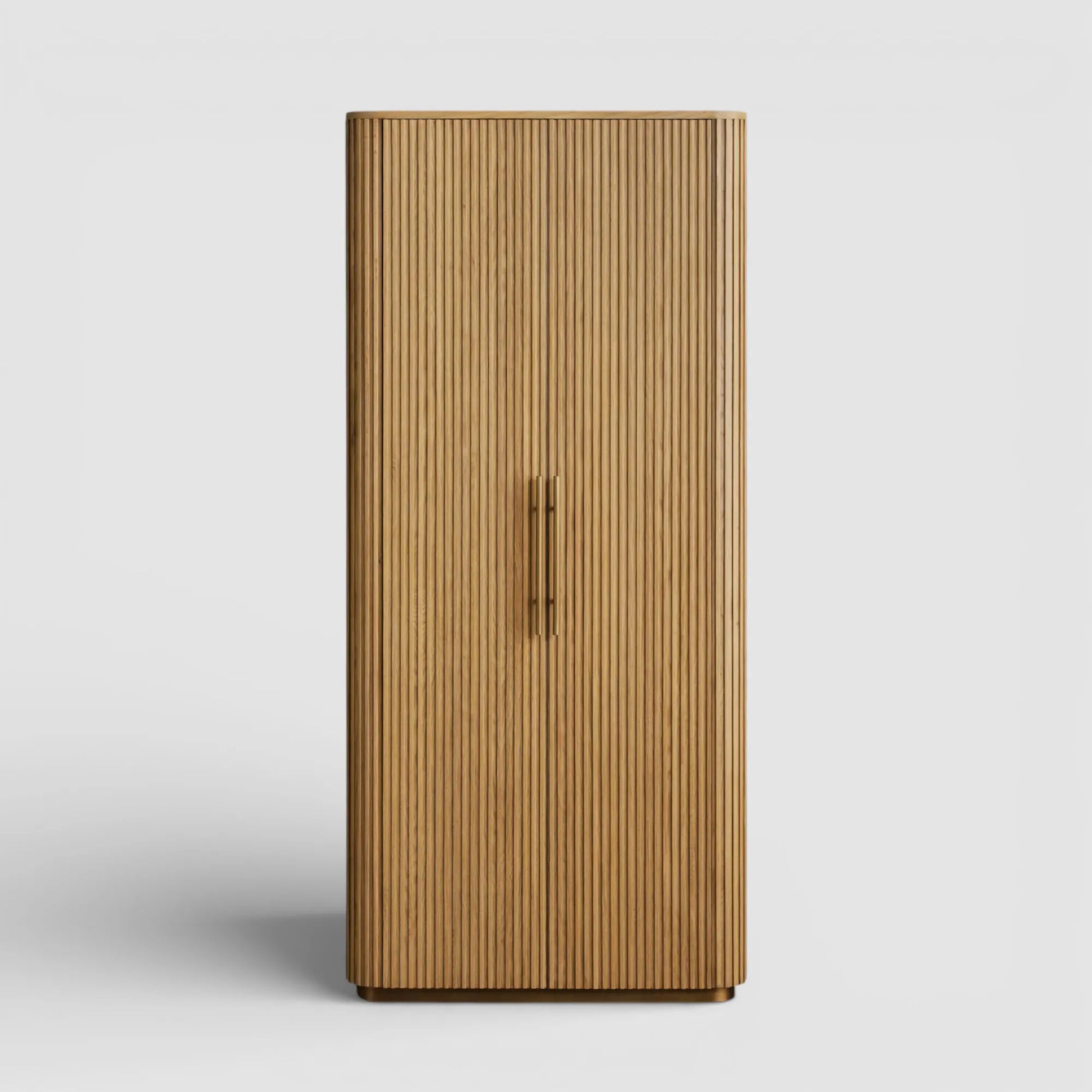 Defined by a refined interplay of materials and proportions, this accent cabinet introduces a sense of quiet sophistication to any interior. Hand-finished oak wood is thoughtfully shaped and enhanced with vertical reeded detailing, creating a layered texture that feels both timeless and distinctly modern. The sculptural silhouette brings visual depth without overwhelming the space, allowing the piece to transition seamlessly from living and dining rooms to bedrooms, offices, or entryways.