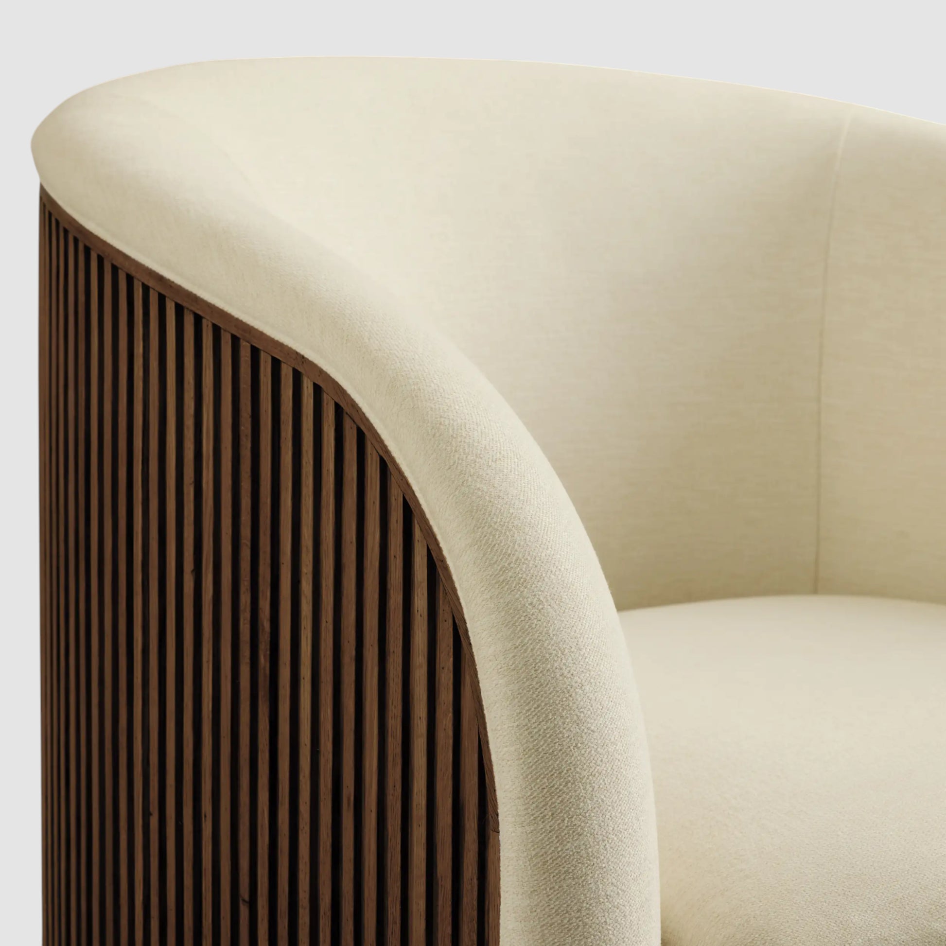 This lounge seating collection brings together rich material contrast and relaxed comfort, creating an inviting presence for living rooms and conversation areas. Hand-finished wood frames are paired with refined reeded detailing and soft upholstery, resulting in a design that feels both elevated and effortlessly livable.
