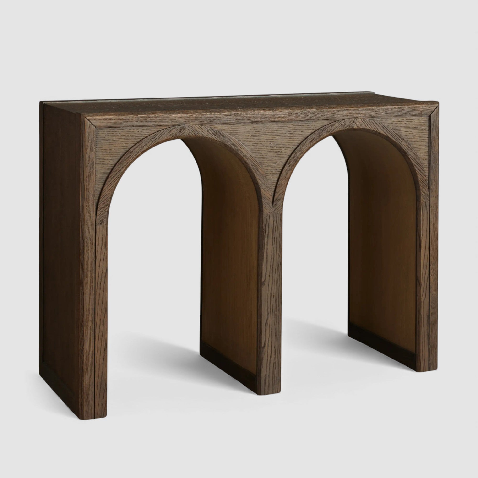 Where gentle curves meet the natural grain of oak, this artisan-crafted piece brings quiet architectural interest to the space. Distinguished arches soften the presence of solid wood, creating a balanced silhouette that feels both refined and inviting.